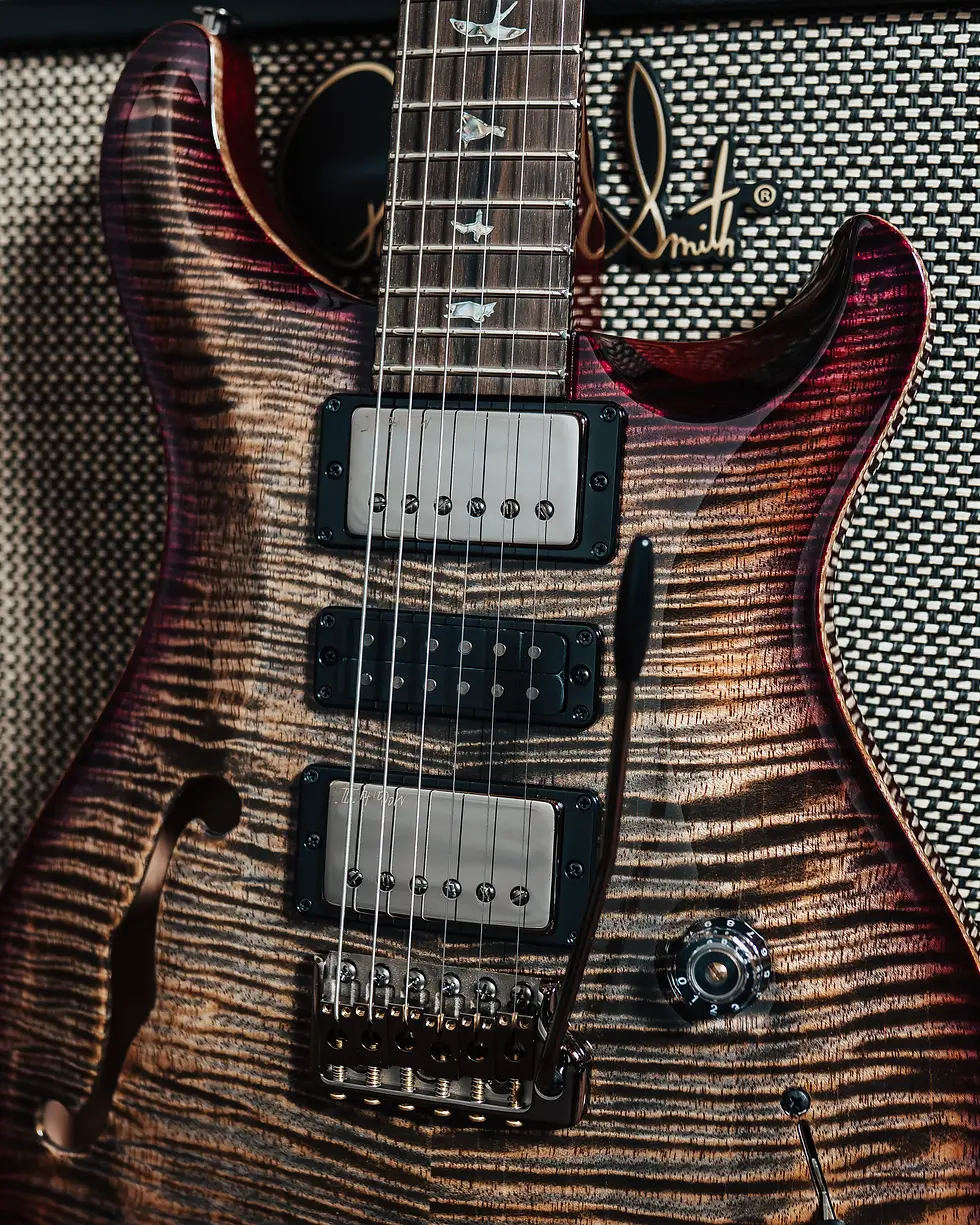 Special Semi-Hollow Mango Limited Editionは、ボディ・トップにフィギュアド・マンゴー、そして指板にジリコテを採用することで、PRSの中でも人気モデルのひとつであるSpecial Semi-Hollowが持つサウンド・レンジはそのままに、自然な温かみと、際立つ存在感を備えたLimited Editionとして仕上げられています。